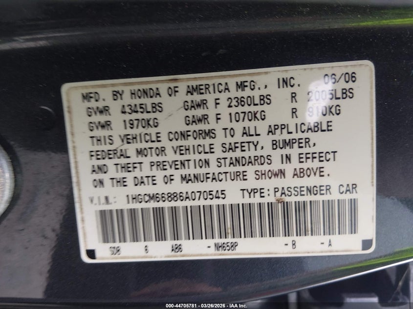 • 1HGCM66886A070545