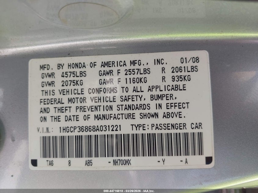 • 1HGCP36868A031221
