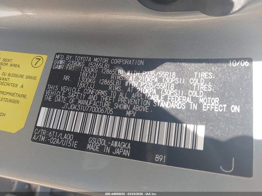 • JTJGK31U770006705