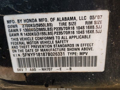 • 5FNYF18187B026331