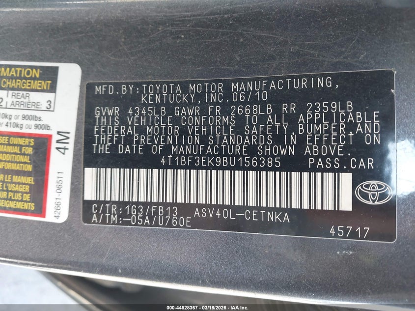 • 4T1BF3EK9BU156385
