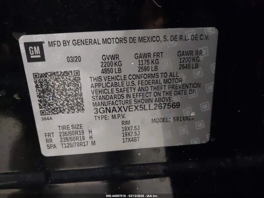 • 3GNAXVEX5LL267569