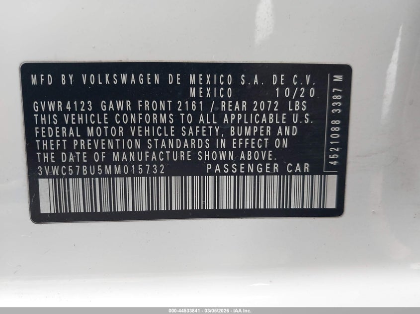 • 3VWC57BU5MM015732