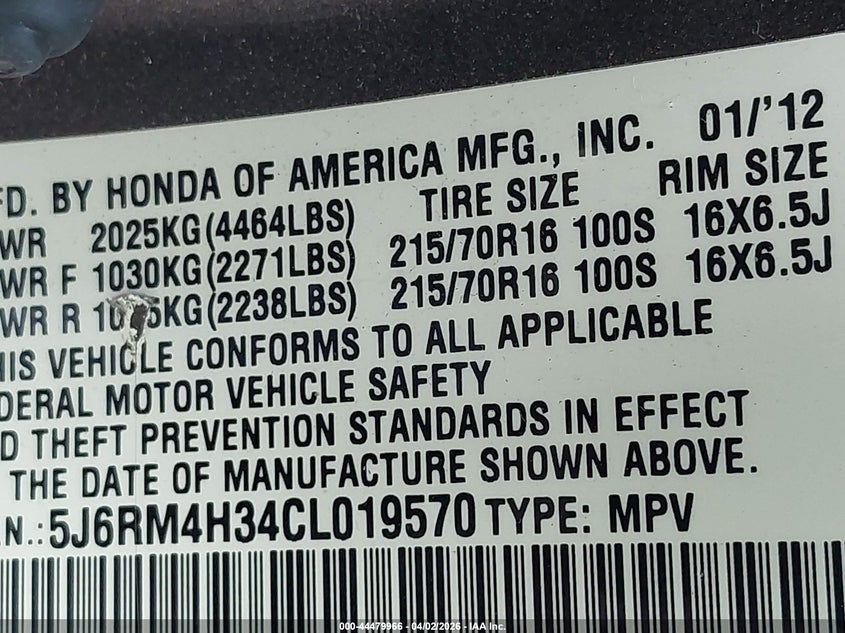 • 5J6RM4H34CL019570