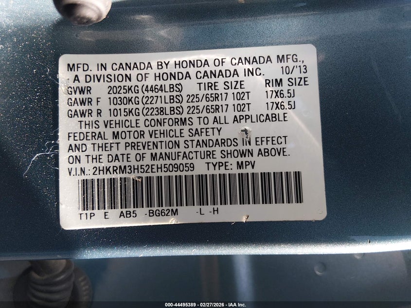 • 2HKRM3H52EH509059