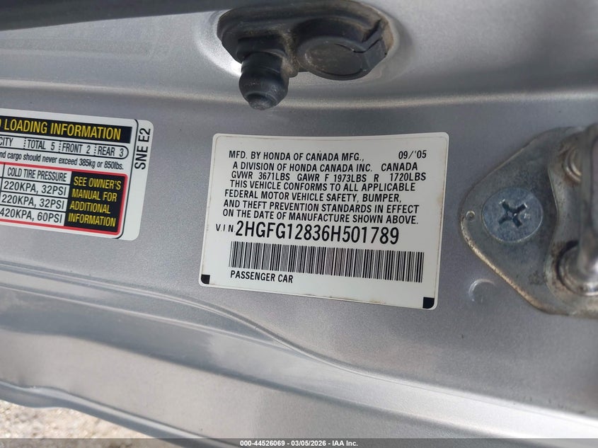 • 2HGFG12836H501789