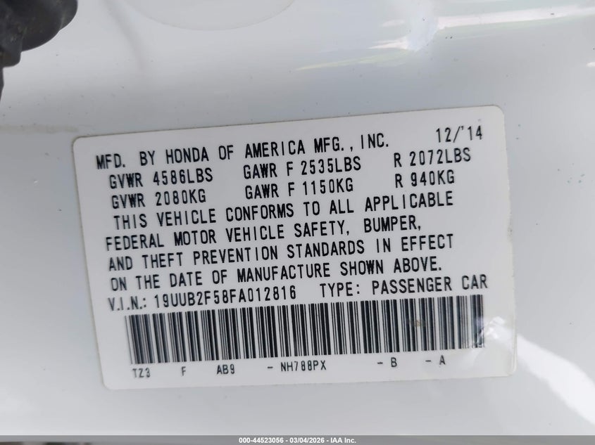 • 19UUB2F58FA012816