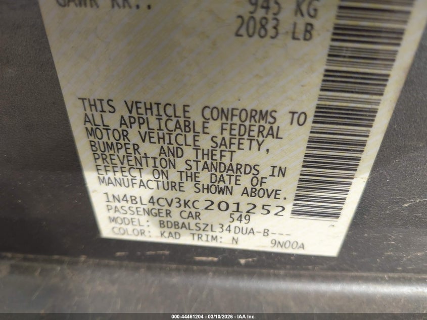• 1N4BL4CV3KC201252