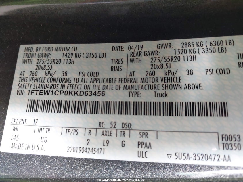 • 1FTEW1CP0KKD63456