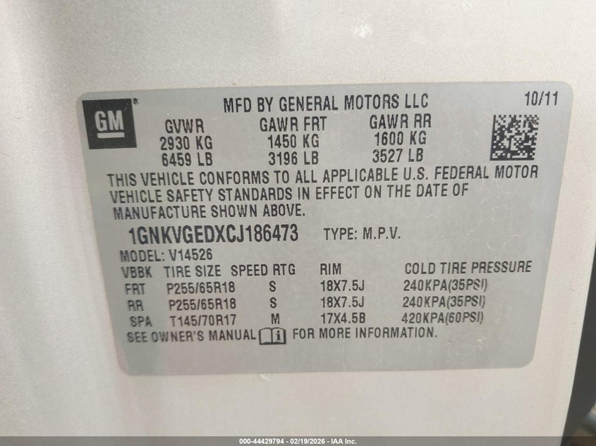 • 1GNKVGEDXCJ186473