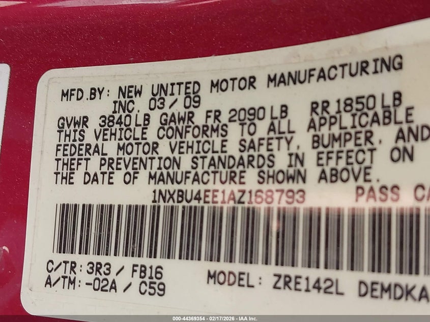 • 1NXBU4EE1AZ168793