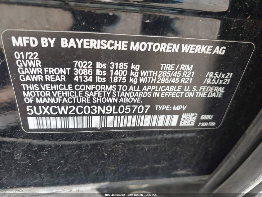 • 5UXCW2C03N9L05707