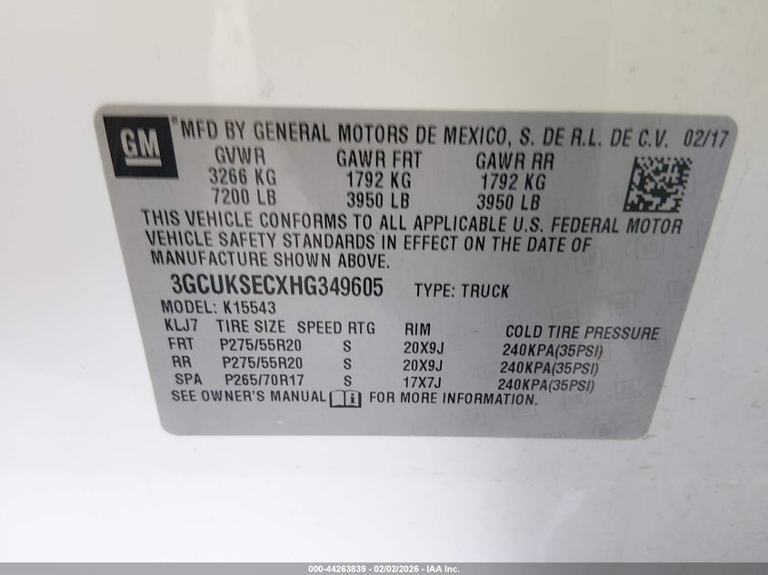 • 3GCUKSECXHG349605