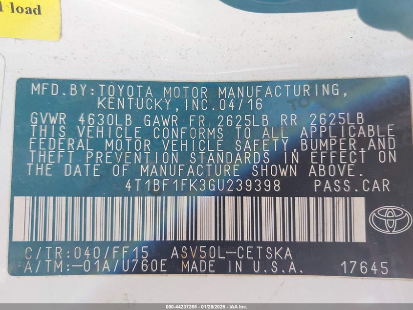• 4T1BF1FK3GU239398