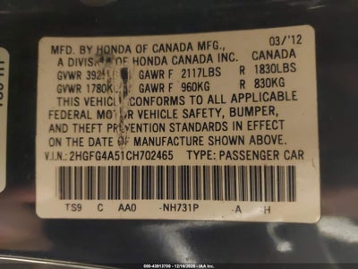 • 2HGFG4A51CH702465