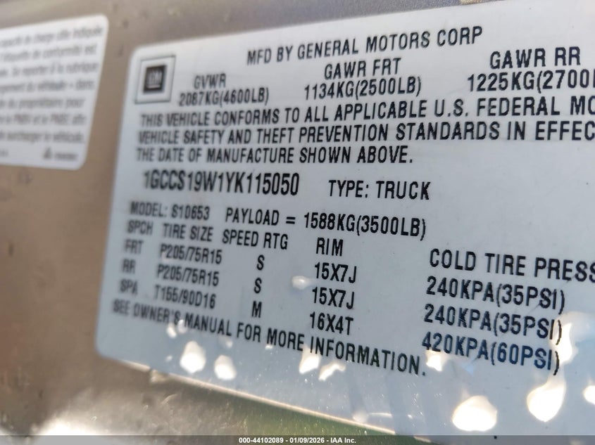 • 1GCCS19W1YK115050