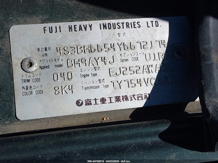 • 4S3BH6654Y6672174