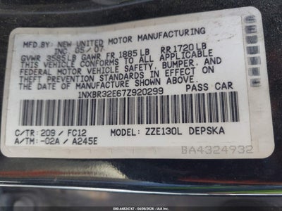 • 1NXBR32E67Z920299