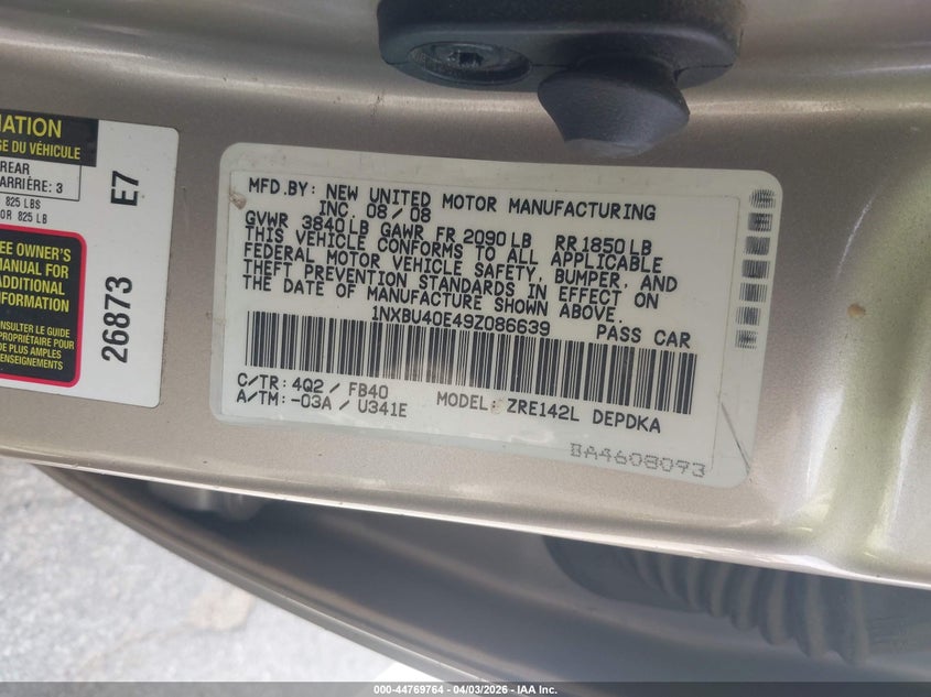 • 1NXBU40E49Z086639