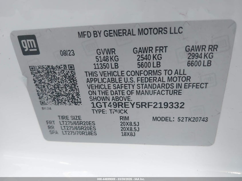 • 1GT49REY5RF219332