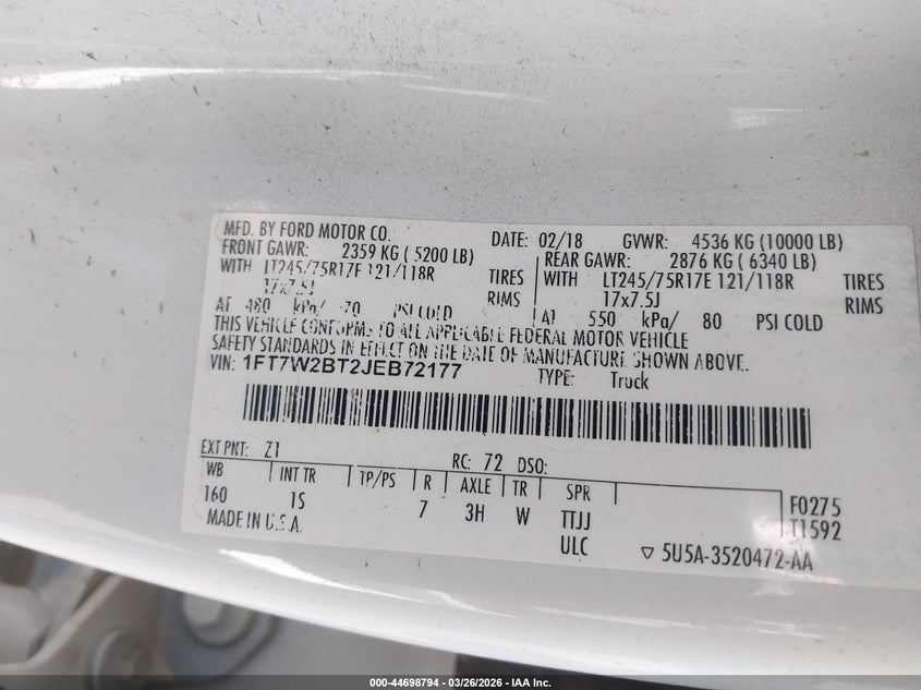 • 1FT7W2BT2JEB72177