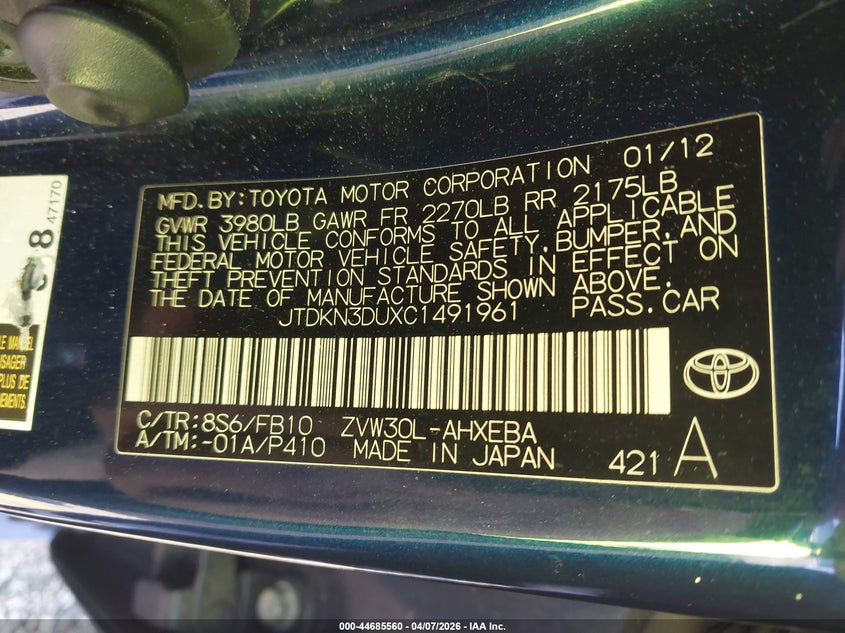 • JTDKN3DUXC1491961