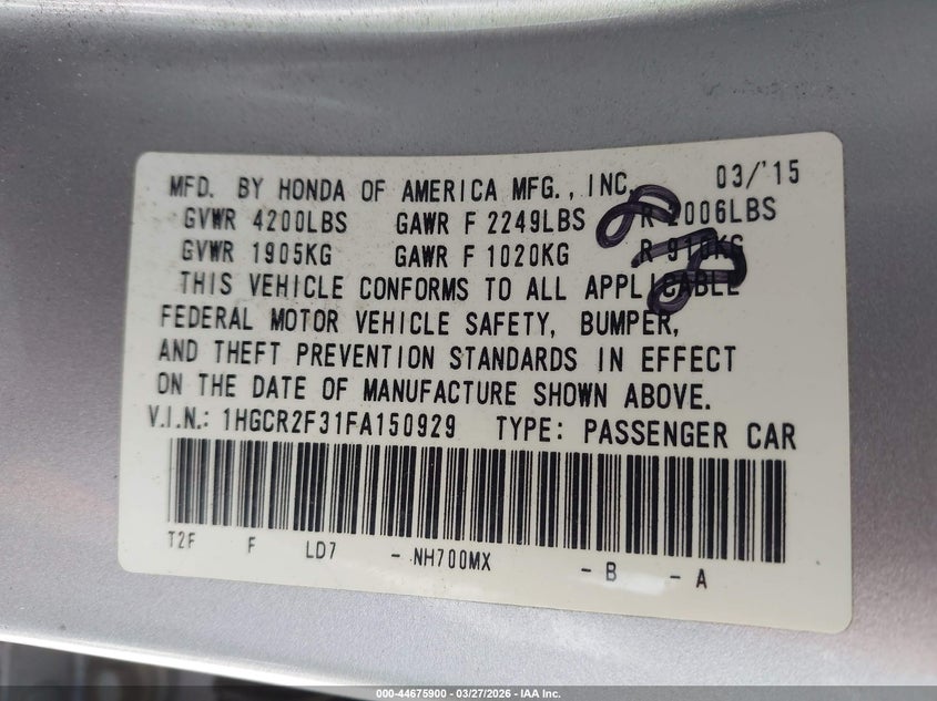 • 1HGCR2F31FA150929