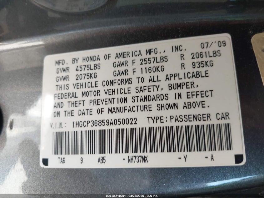 • 1HGCP36859A050022
