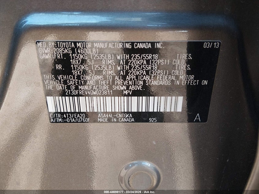 • 2T3DFREV4DW023811