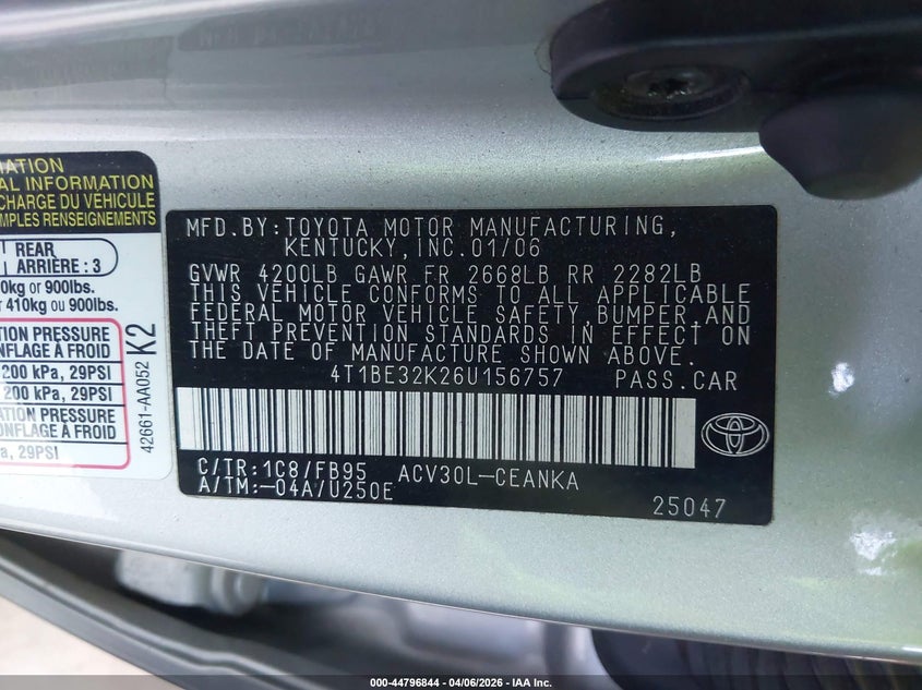• 4T1BE32K26U156757