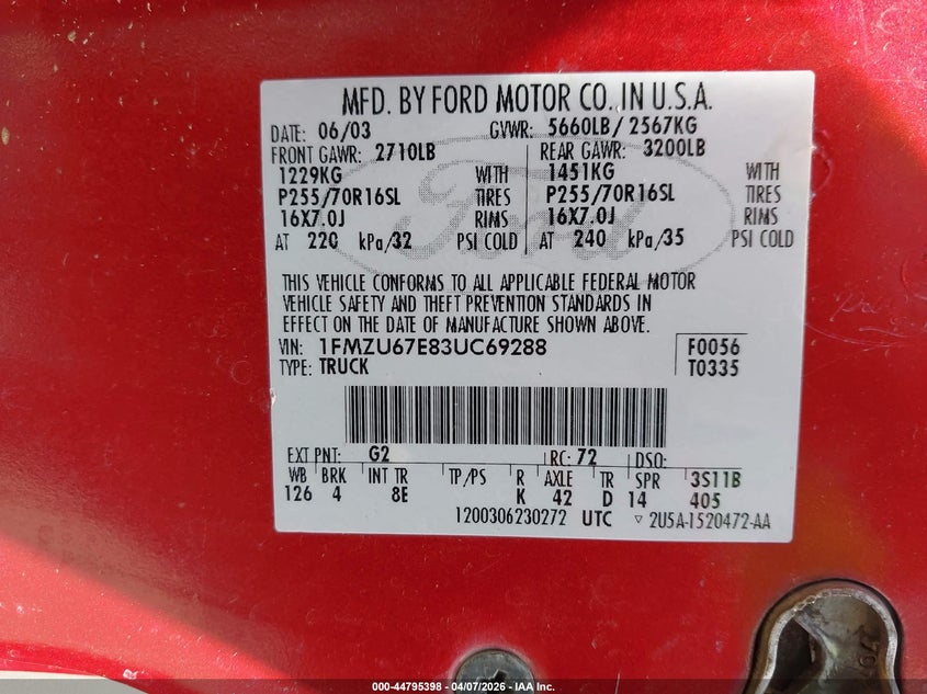 • 1FMZU67E83UC69288