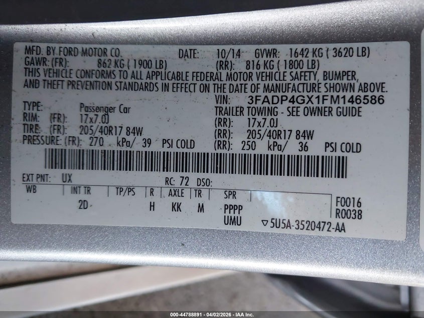 • 3FADP4GX1FM146586