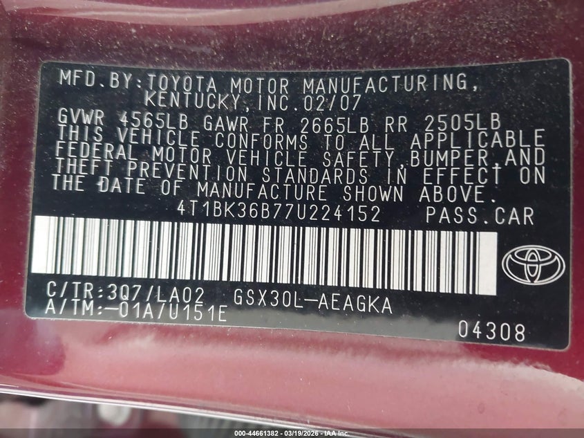 • 4T1BK36B77U224152