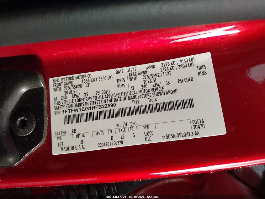 • 1FTFW1EG1HFB22590