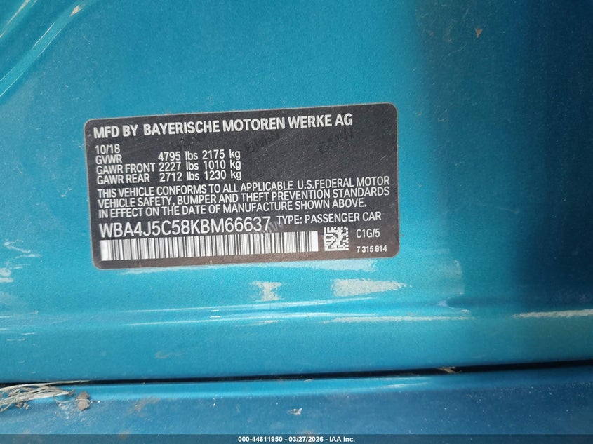 • WBA4J5C58KBM66637