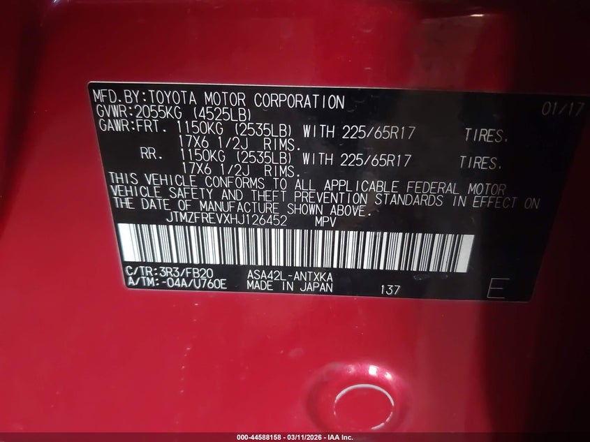 • JTMZFREVXHJ126452