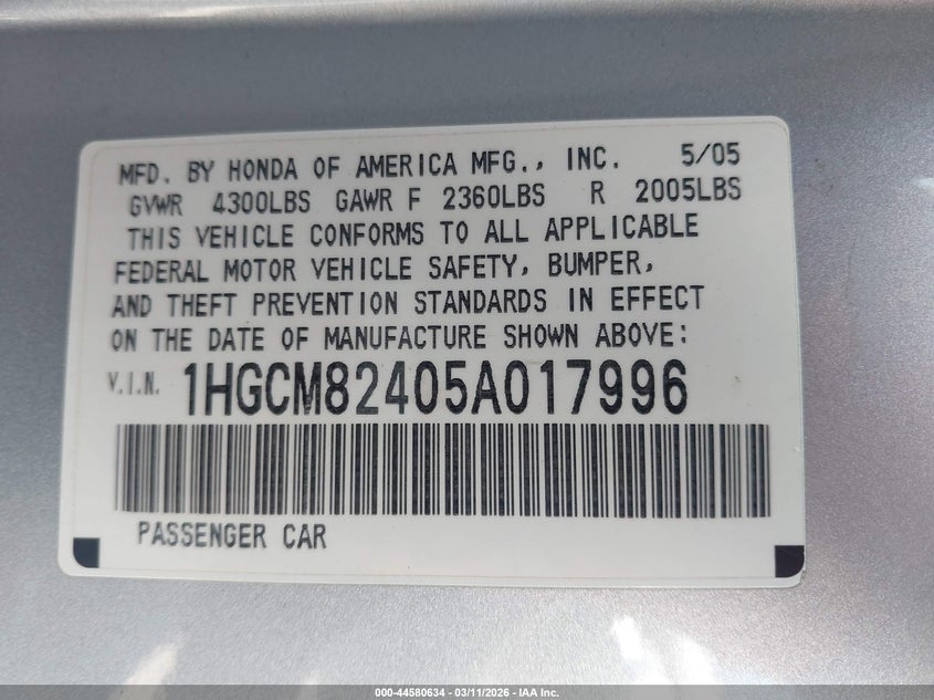 • 1HGCM82405A017996