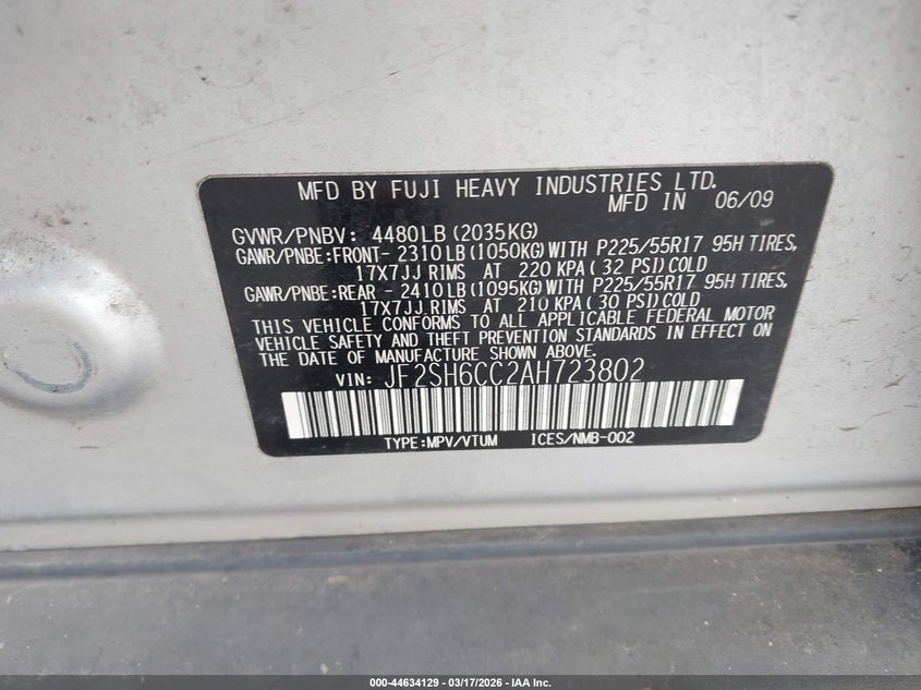 • JF2SH6CC2AH723802