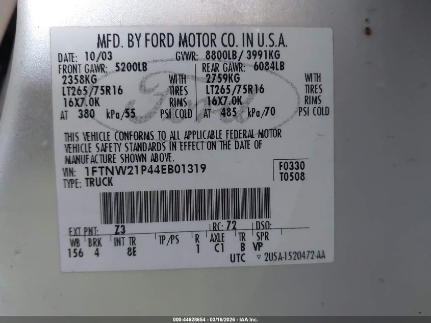 • 1FTNW21P44EB01319
