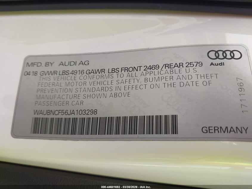 • WAUBNCF56JA103298