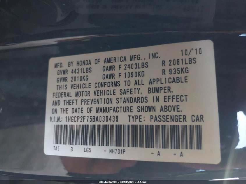 • 1HGCP2F75BA030439