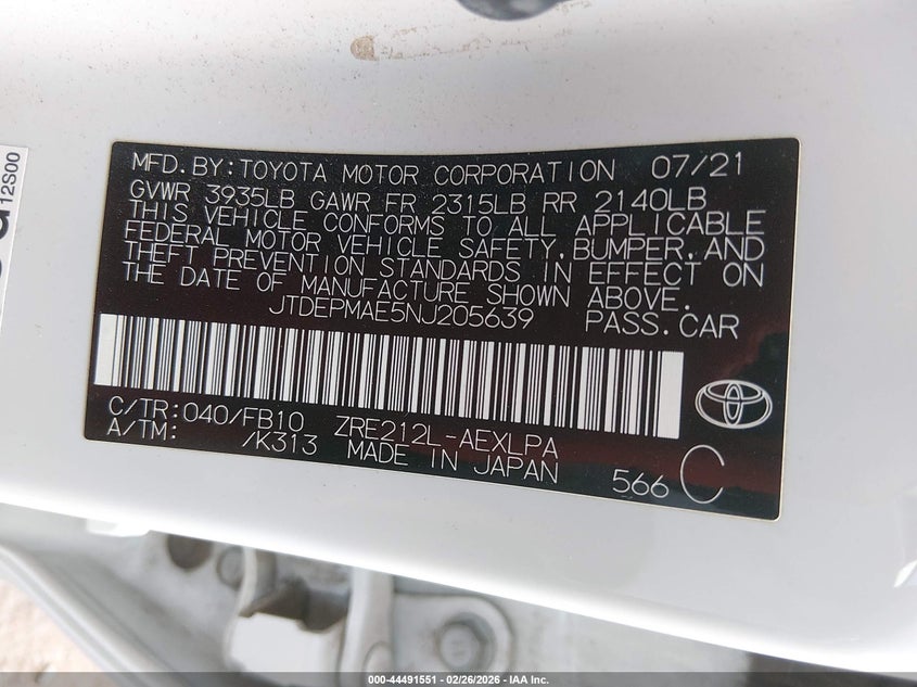 • JTDEPMAE5NJ205639