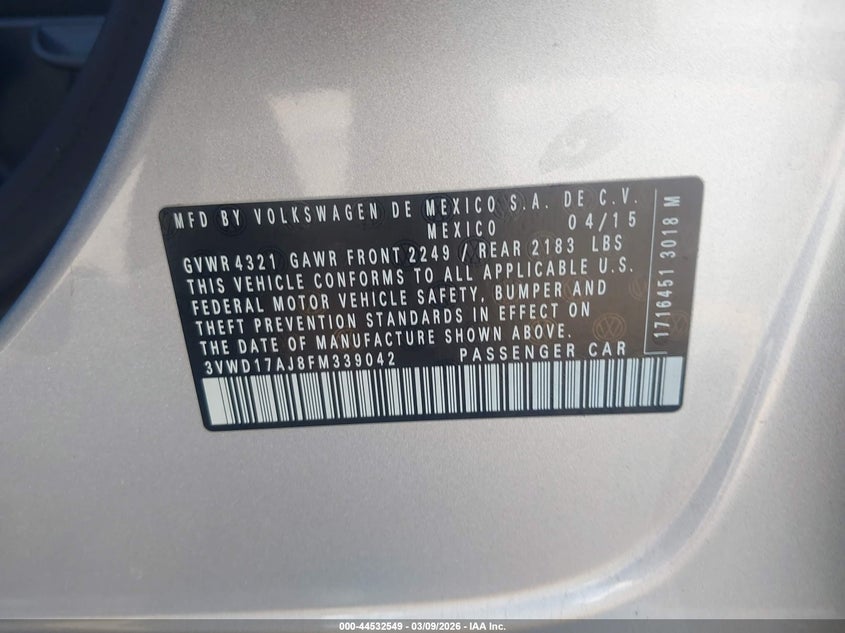 2015 VOLKSWAGEN JETTA 1.8T SE for Sale in Fontana, CA