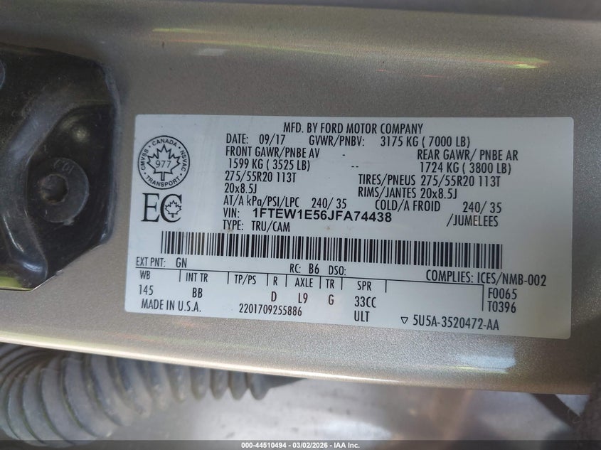 • 1FTEW1E56JFA74438