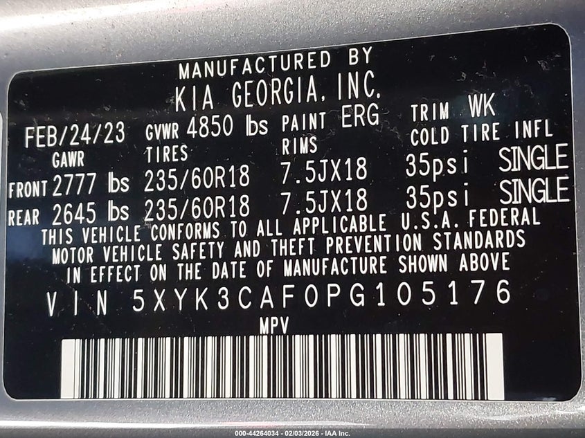 • 5XYK3CAF0PG105176
