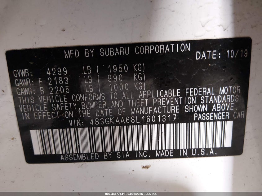 • 4S3GKAA68L1601317