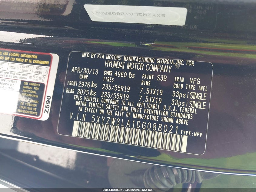 • 5XYZW3LA1DG088021