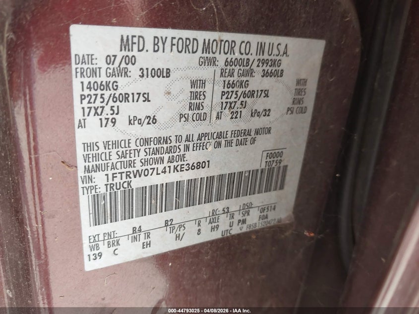 • 1FTRW07L41KE36801