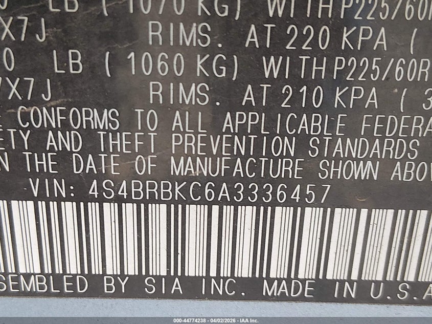 • 4S4BRBKC6A3336457