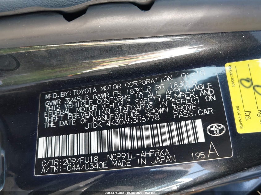 • JTDKT4K30A5306778